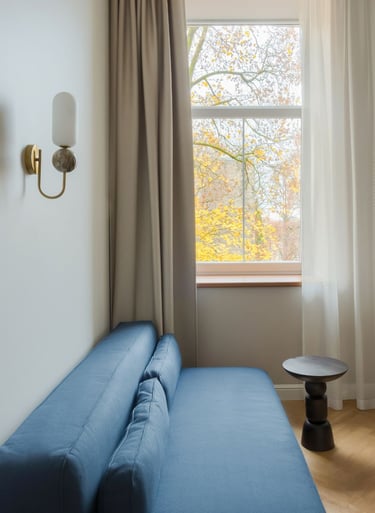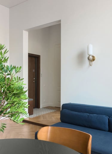 Šis Vilniaus centre esantis nedidelis butas buvo įrenginėjamas nuomai, tačiau siekta išsaugoti erdvės pojūtį, maksimalų komfortą ir funkcionalumą iki smulkiausių detalių. Šiame interjere rinkausi kontrastus tarp lakoniškų ir detalių formų. Nuosaikios sienų spalvos, medinės grindys ir išsaugotas didelis lubų aukštis atvėrė erdves menui bei įdomesnėms detalėms.